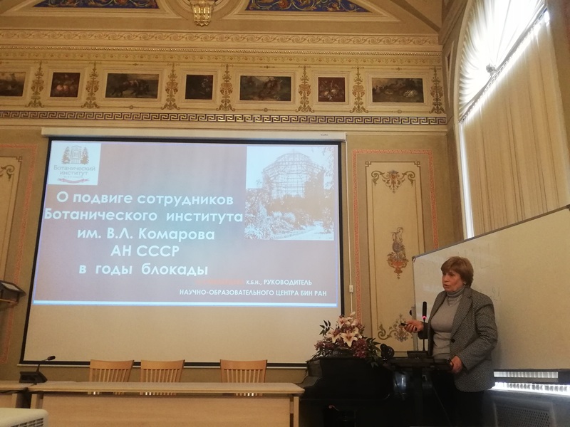 Нина Анатольевна Медведева из Ботанического института РАН им. В.Л. Комарова (БИН РАН) выступила с докладом о подвиге сотрудников института в годы блокады. Она отметила, что несмотря на нехватку ресурсов и постоянную угрозу жизни, ученые продолжали работу, сохраняя уникальные образцы растений из коллекции института и оказывали консультационную помощь жителям города в использовании в пищу съедобных дикий растений, настоек их хвои и т.п.
