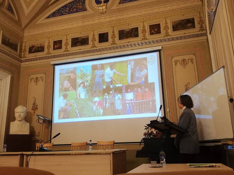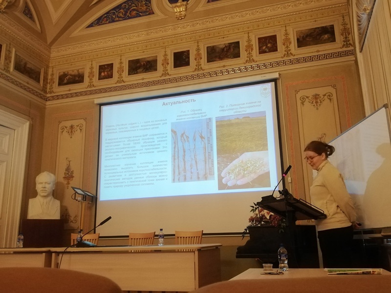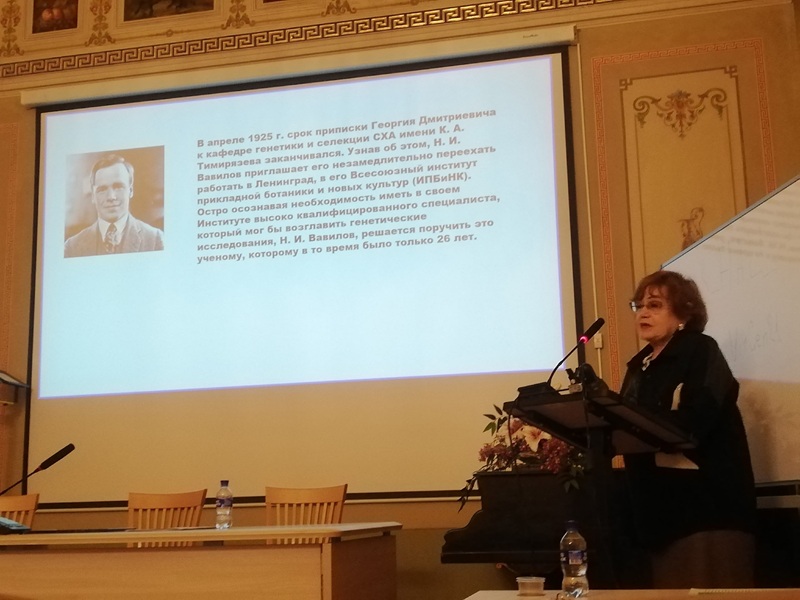 Открыли мероприятие исторические выступления: ведущий научный сотрудник отдела генетики ВИР, доктор биологических наук Ирина Анисимова рассказала о пионерах генетической науки в институте, а руководитель отдела генетических ресурсов зернобобовых культур ВИР, доктор биологических наук Маргарита Вишнякова осветила роль «дипломатических почт» Николая Вавилова и Георгия Карпеченко в развитии генетики.